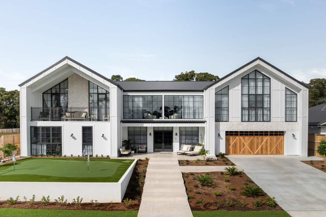 From the street, this house is a showstopper, with the perfect blend of natural design elements and modernity used in this contemporary farmhouse. The symmetry, grand windows and natural tones create a mesmerising façade that is just waiting to be admired. The moment you step through the front door of the home, you notice the intricate detailing throughout. Contrasting beautifully with the airy, light and open living area, the custom dark toned framework, adds depth to the striking interior.