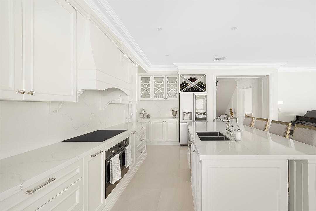 Filled with clean, crisp whites and a French-inspired theme, this elegant abode was expertly crafted by Zenith Homes Australia in close conjunction with the project’s designer, Sarah Remaili from SR House of Design. Including two outdoor entertaining areas and both formal and informal indoor spaces for guests and family to enjoy, not a single inch of this glorious piece of land has been laid to waste.